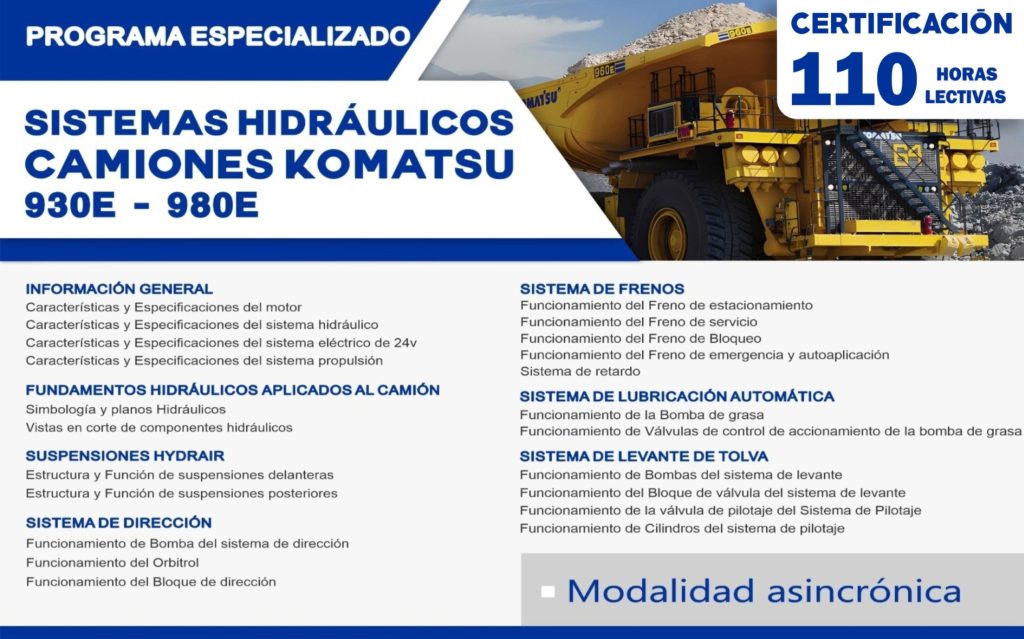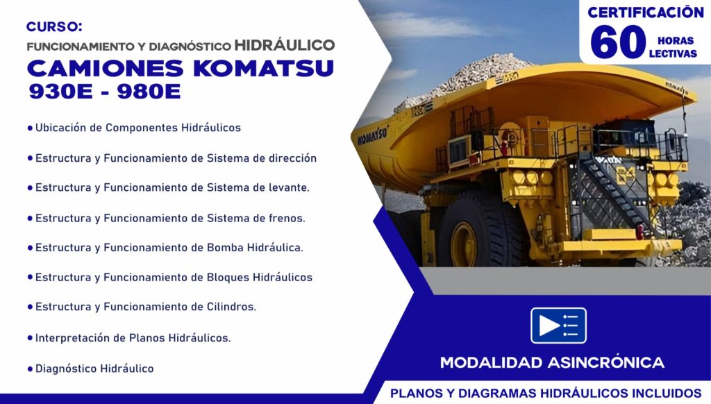 Diagnóstica y soluciona problemas en SISTEMAS HIDRÁULICOS de los camiones eléctricos KOMATSU; disminuyendo tiempos y costos en tus procesos de ejecución de manera eficaz